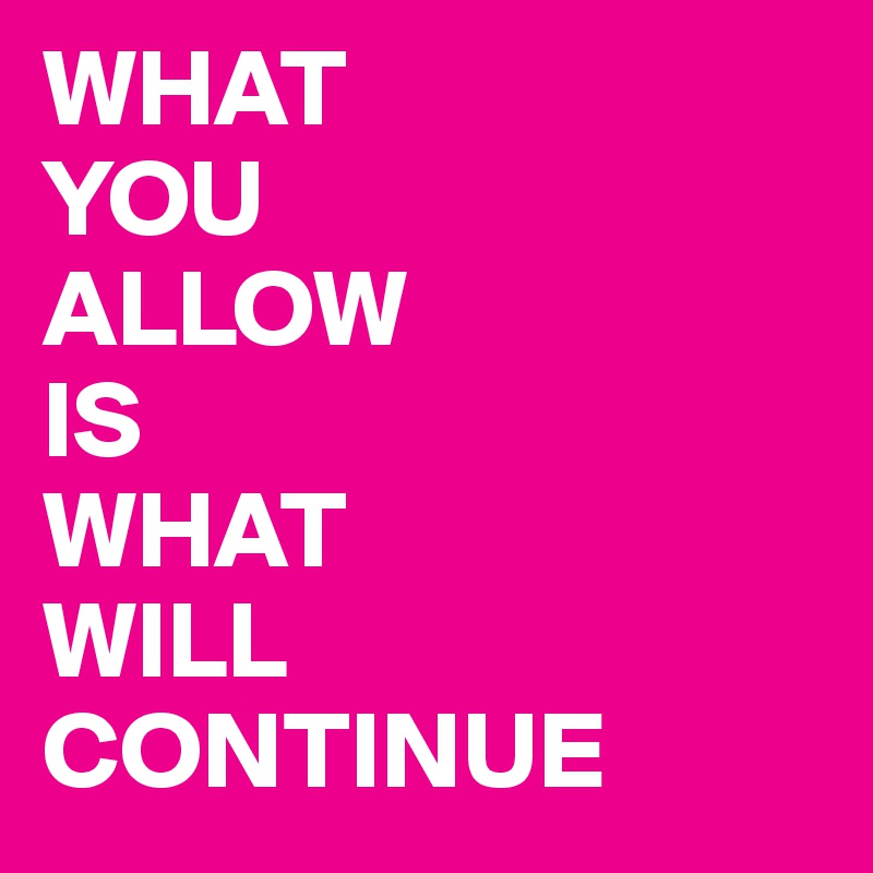 What You Allow Is What Will Continue : What You Allow Is What Will Continue Inspirational Words Quotable Quotes Inspirational Quotes : She is one of those people that says life how it is (which i totally love and respect about her).. Dear everyone — this sentiment is true at the global level, at the political level, at the historical level, but most intimately at the personal level. I know this is a difficult. How to implement 'what you allow is what will continue'? This is one of those quotes. On to the next 20 years!